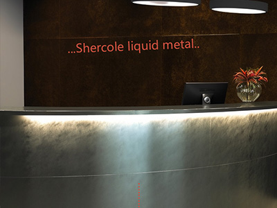 液態(tài)金屬裝飾在辦公室的應用同樣多樣豐富。首先,可以應用于辦公室的大堂和接待區,如墻面、天花板以及接待臺的裝飾元素,會議...